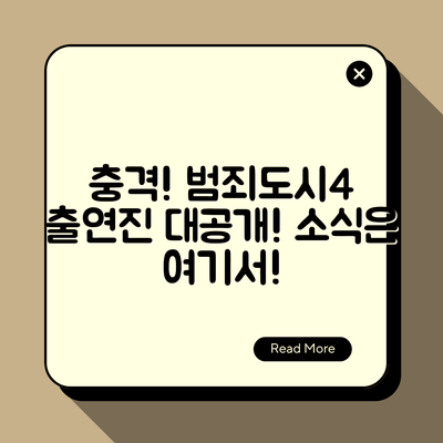 여러분, 이 놀라운 출연진 소식을 들으셨나요? 범죄도시4가 드디어 우리 앞에 등장할 준비를 하고 있습니다!